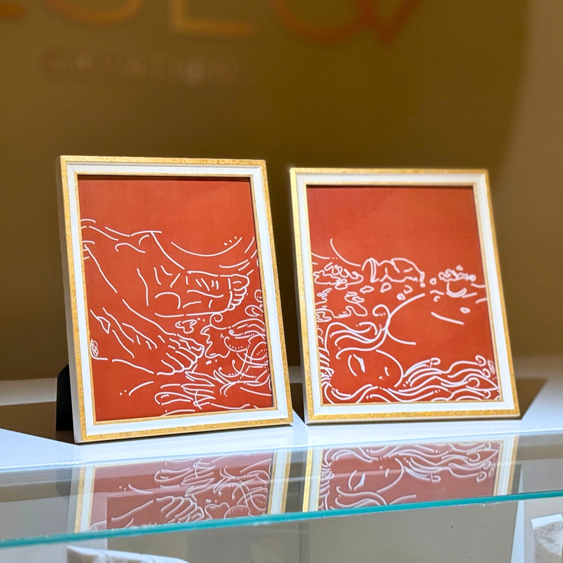 • Gold foil and white frame