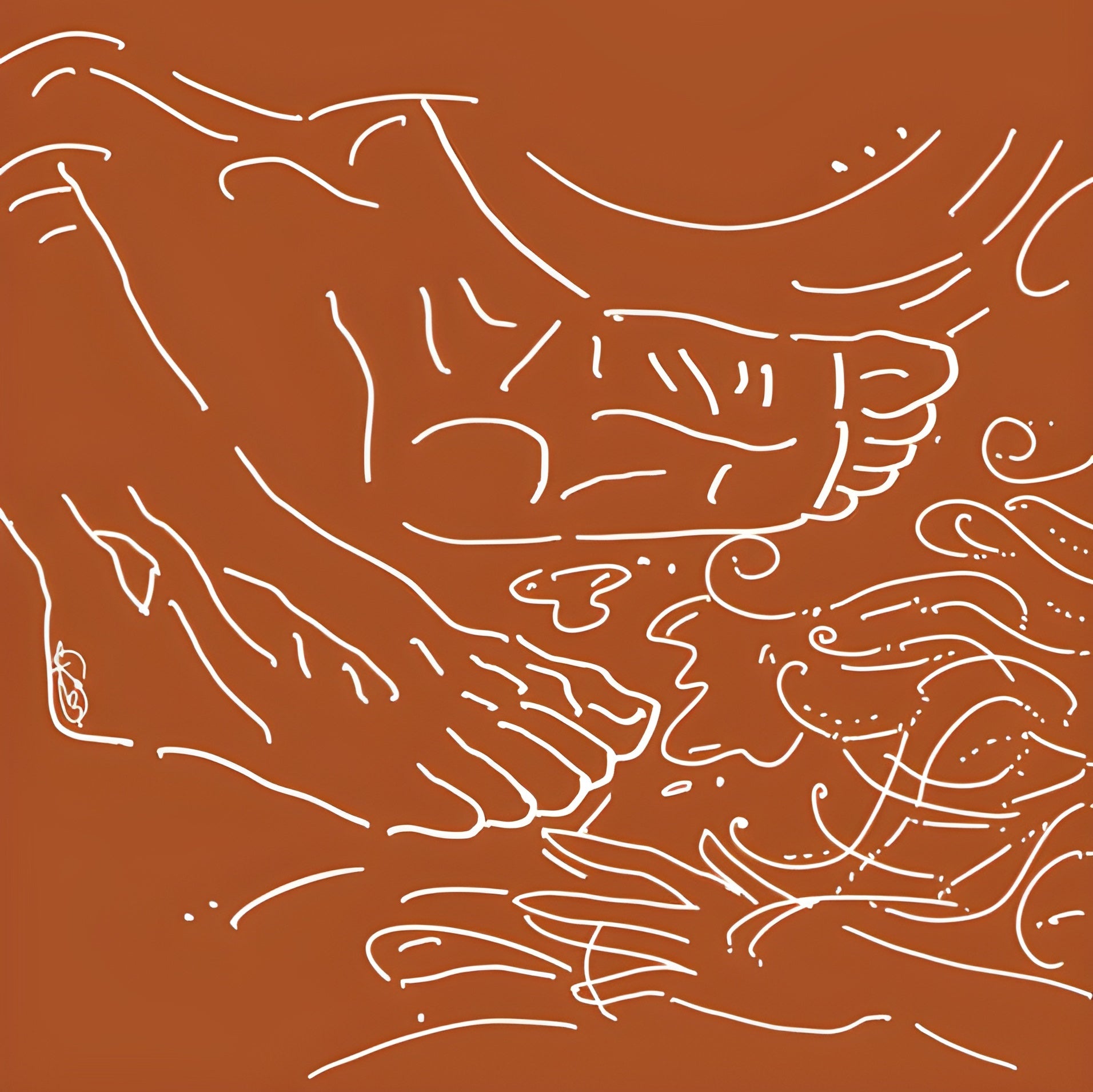 Abstract art of the woman at the glorious feet of Jesus. Perfume on the floor. Let the fragrance fill your room with this painting.
